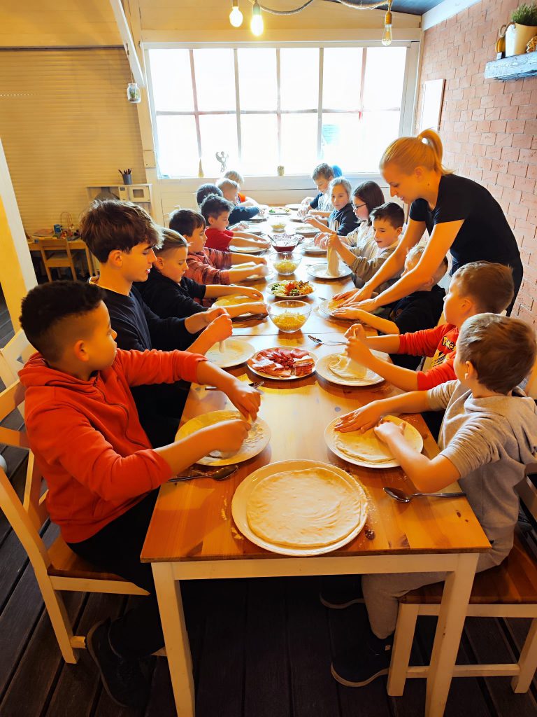Nowy turnus rozpoczęliśmy wyjątkowo apetycznie – od warsztatów robienia pizzy. Każdy uczestnik mógł stworzyć własną kompozycję ulubionych składników, ucząc się przy tym podstaw pracy zespołowej i kreatywności. Oczywiście nie zabrakło też treningu oraz wspólnych zabaw integracyjnych, które pozwoliły szybko złapać dobry rytm na cały tydzień.