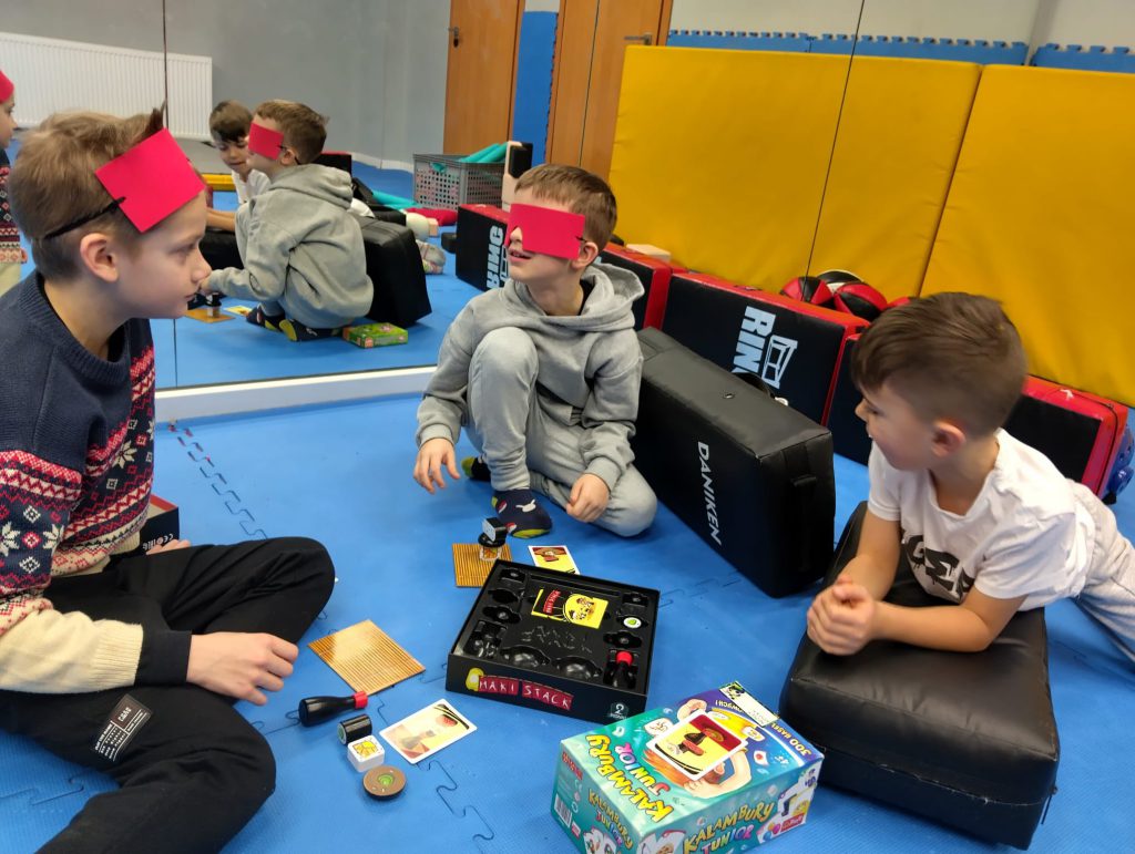 Na dzieci czekały kręgle, cybergaj oraz symulatory, które dostarczyły mnóstwo emocji i zdrowej rywalizacji. Po powrocie do Dojangu przyszedł czas na chwilę luzu – planszówki, integrację i wspólną zabawę, a dzień zakończyliśmy oczywiście treningiem.